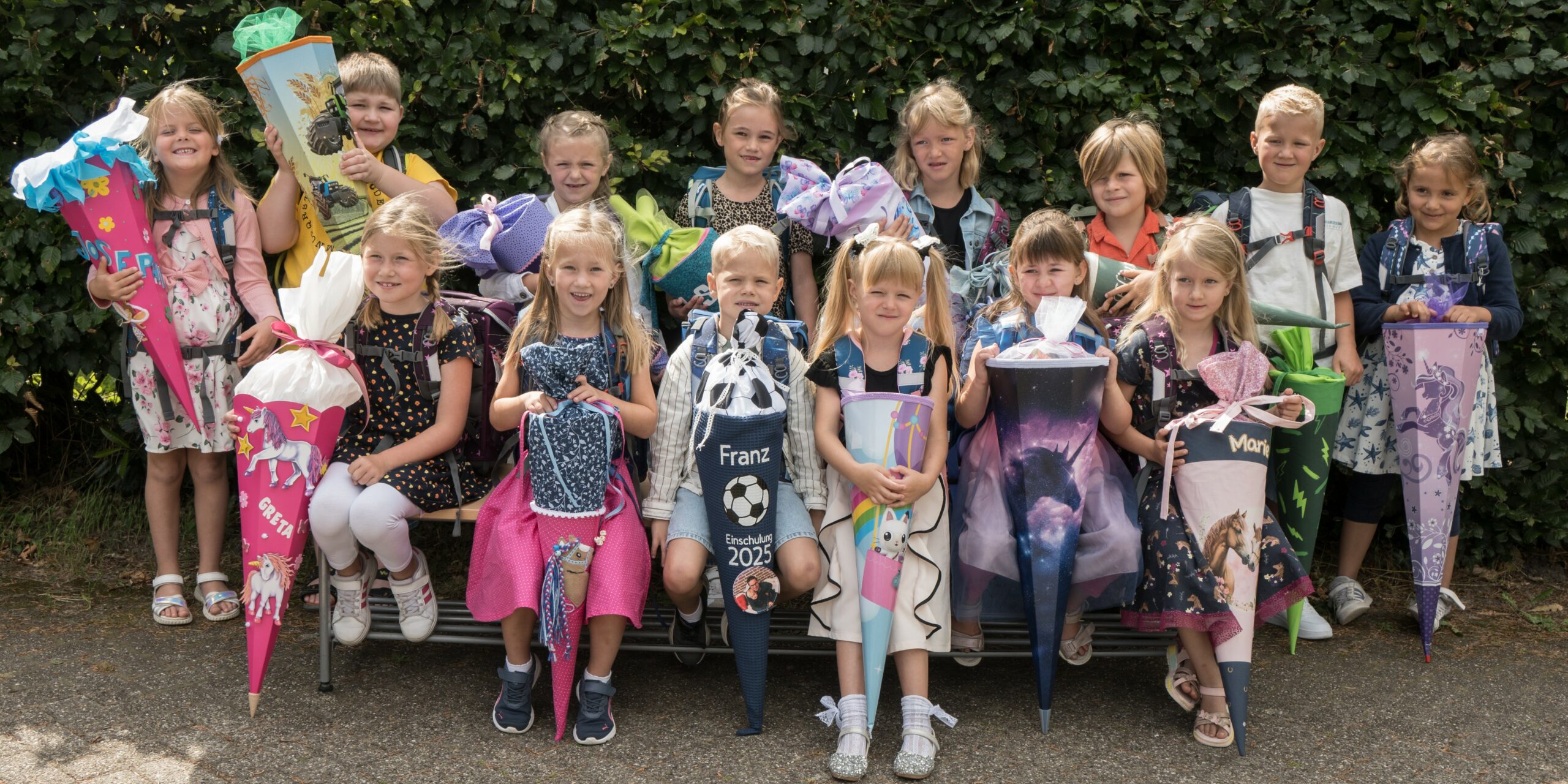 Am 16.08.2025 wurden die neuen Erstklässlerinnen und Erstklässler in der Schule begrüßt. Der Tag startete mit einem Gottesdienst in der Kirche, der von den Paten der Erstklässlerinnen und Erstklässler aus Klasse 4 vorbereitet wurde. Danach ging es zur Schule, wo die Paten der Klasse 4 nach einer kurzen Begrüßung durch die Schulleiterin Frau Pieper einen Tanz zum Lied „Löwenstark“ vorführten.